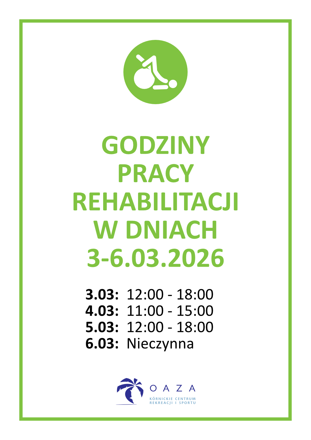 Godziny otwarcia - Rehabilitacja